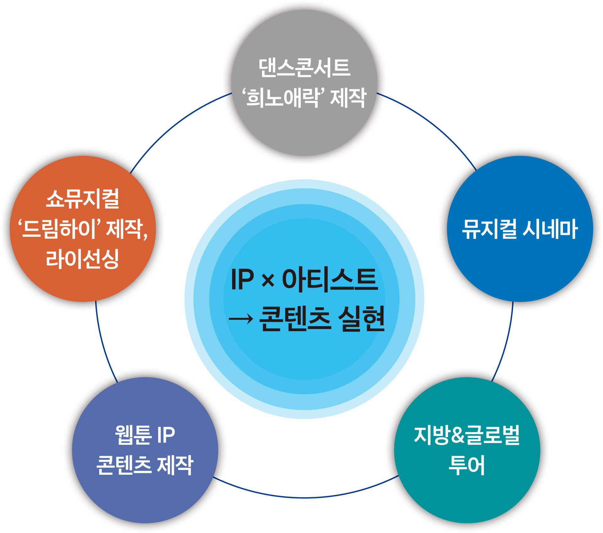 교육 · 공연 · 매니지먼트 · IP 비즈니스를 융합하여